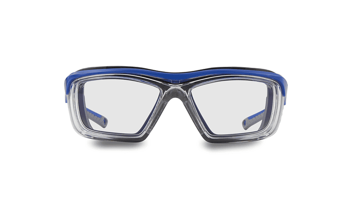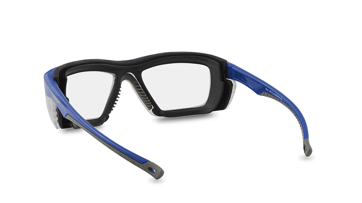 Gafa de seguridad fabricada en poliamida TR-90, garantía de resistencia y calidad. Con goma antideslizante para máximo confort. No contiene ningún componente metálico. Disponible en graduado a medida o con lente neutra, posibilidad de tratamiento anti-abrasión y anti-empañamiento reforzado.