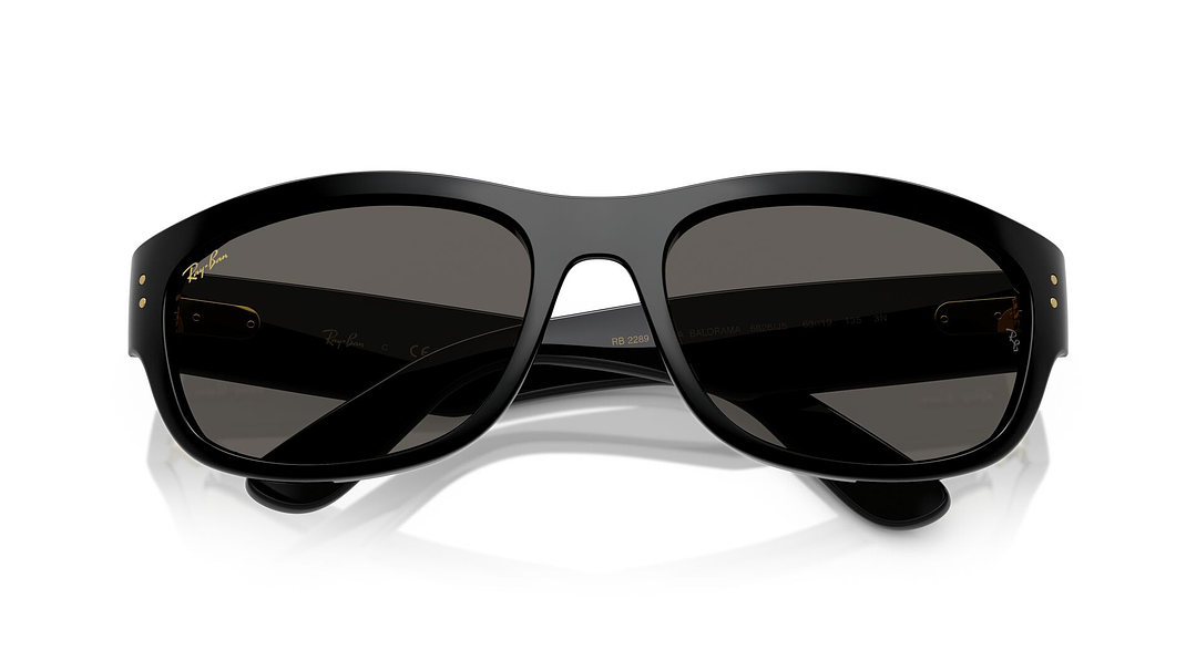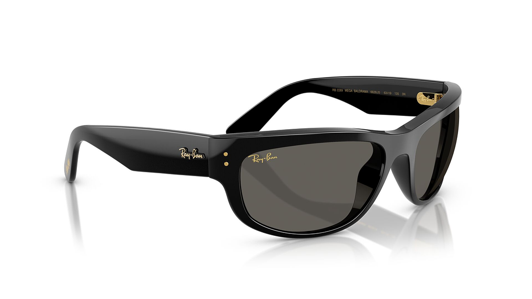 Blacked Out: 3 modelos icónicos -Mega Wayfarer, Mega Clublaster y Mega Balorama- con lentes ultra negros y detalles dorados diseñados por A$AP ROCKY.